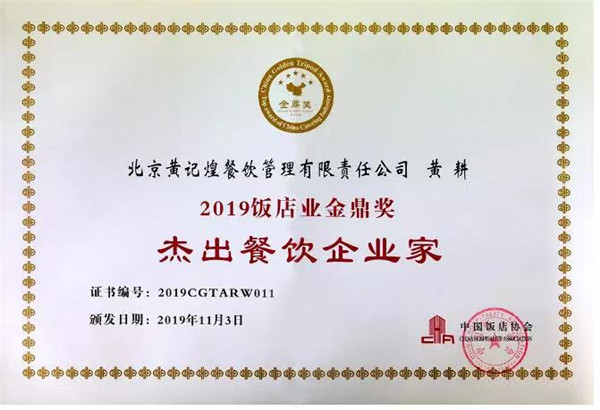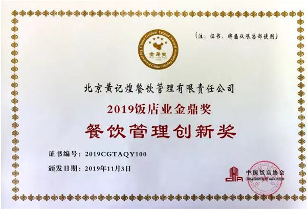 中国美食节20年成就辉煌 黄记煌斩获“2019饭店业金鼎奖”两项大奖
